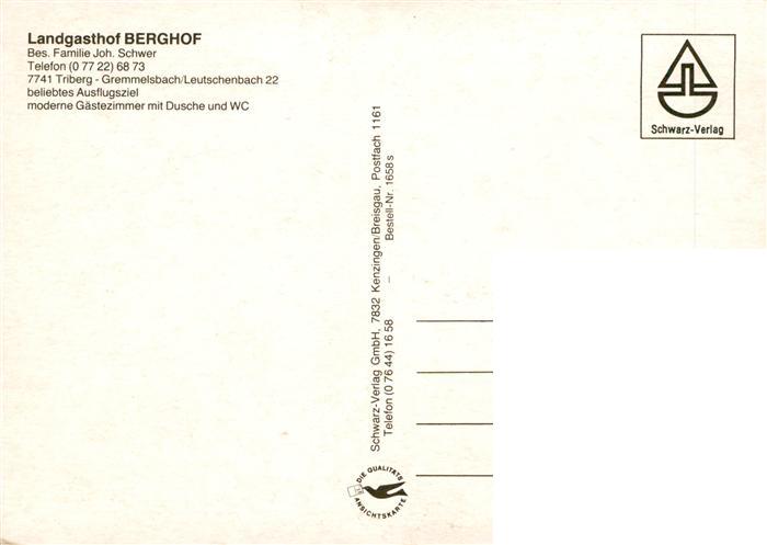 73941840 Leutschenbach Gremmelsbach Triberg Landgasthof Berghof Gastraeume postalisch nicht gelaufen Erhaltung siehe scans [WerneD78] Wern Katcode 11110008326060