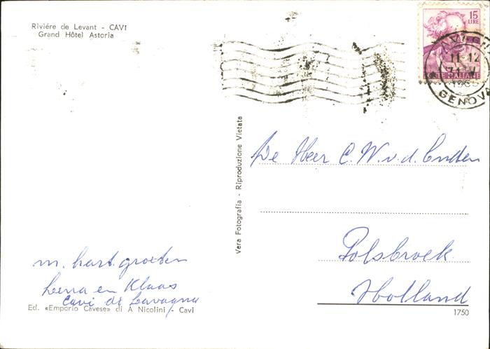 11490912 Levante Riviera di Levante Cavi Grand Hotel Astoria KatCode 11240