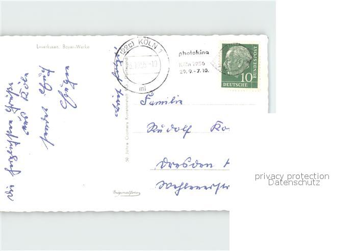 32360191 alte Postkarte Leverkusen Bayer Werke Fliegeraufnahme postalisch gelaufen Erhaltung siehe scans KatCode: 11110005316000