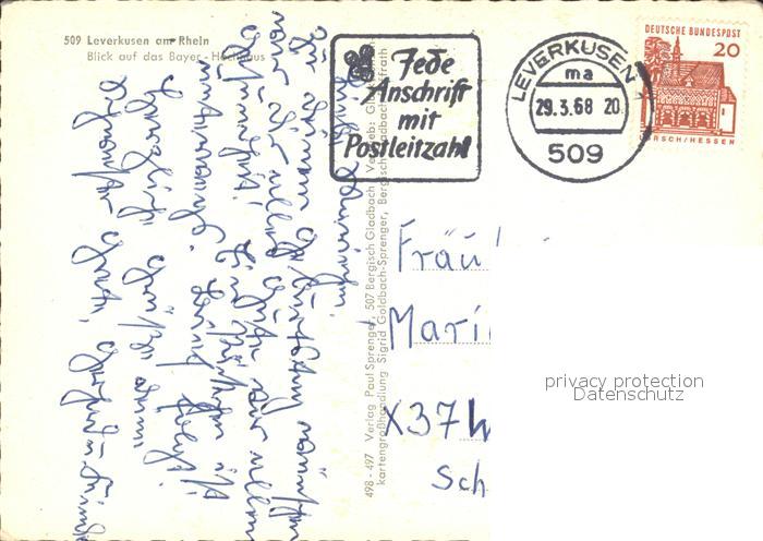 72114205 alte Postkarte LEVERKUSEN CITY Bayer-Hochhaus postalisch gelaufen Erhaltung siehe scans KatCode: 11110005316000