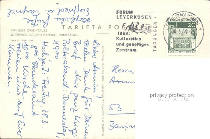 71845608 alte Postkarte LEVERKUSEN CITY Pirineos Orientales Supermolina Hotel Solineu postalisch gelaufen KatCode: 11110005316000