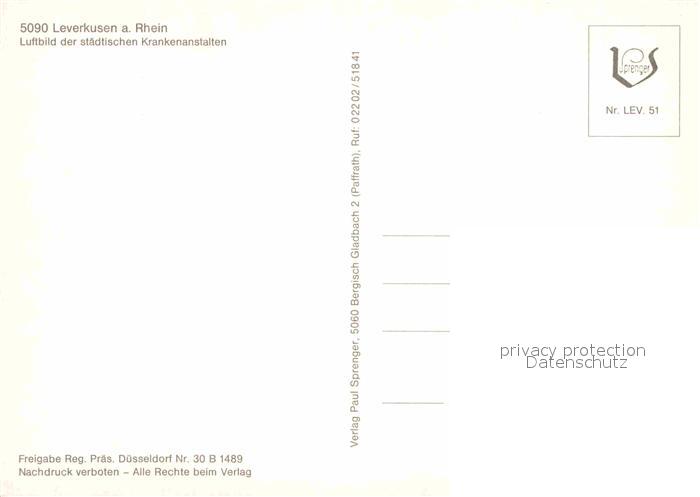 72698766 LEVERKUSEN CITY Staedtische Krankenanstalten Fliegeraufnahme postalisch nicht gelaufen Erhaltung siehe scans [FriedD77] KatCode: 11110005316000