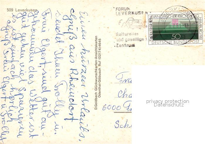 73176557 alte Postkarte Leverkusen Hochhaus Forum Doktorsburg Schloss Morsbroich postalisch gelaufen Erhaltung siehe scans [KathaD81] KatCode: 11110005316000