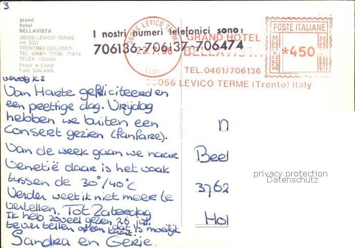 old postcard Levico Terme Grand Hotel Bellavista Swimmingpool postalisch gelaufen Erhaltung siehe scans