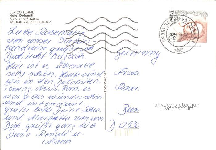 old postcard Levico Terme Hotel Dolomiti Ristorante Pizzeria Segelboote postalisch gelaufen Erhaltung siehe scans