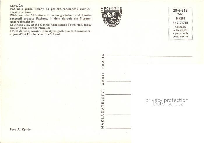 Levoca Slovakia Rathaus postalisch nicht gelaufen Erhaltung siehe scans