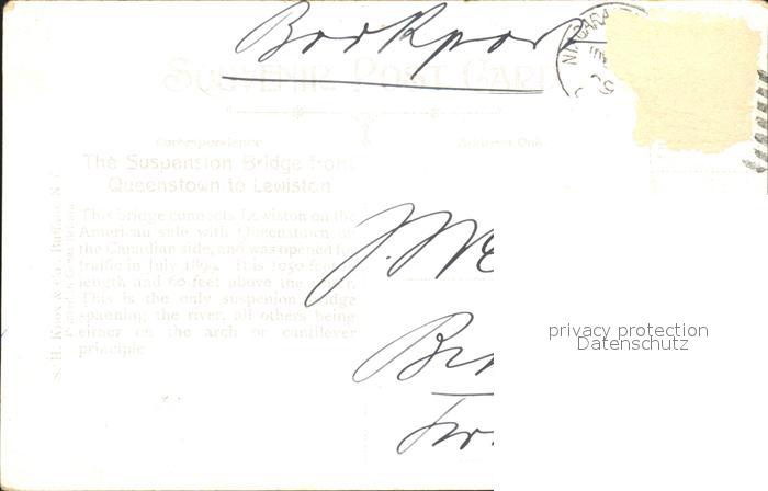 11688573 old postcard Lewiston New York Lewiston Bridge Niagara River postalisch gelaufen Erhaltung siehe scans KatCode: 14140340000000