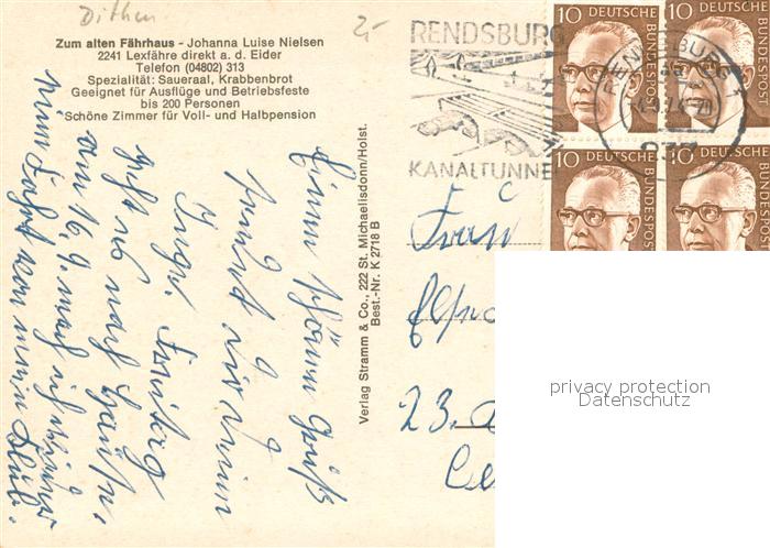 73669955 alte Postkarte Lexfaehre Dithmarschen Gaststaette Zum alten Faehrhaus Panorama Schleuse postalisch gelaufen Erhaltung siehe scans [WerneD78] KatCode: 11110001051136