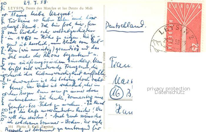13772117 alte Postkarte Leysin VD Dents des Morcles et les Dents du Midi postalisch gelaufen Erhaltung siehe scans [FriedD77] KatCode: 11470240755800