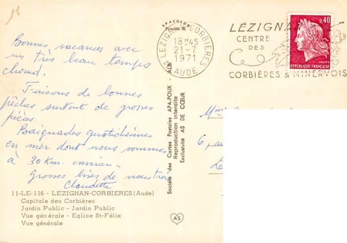 13947942 Lezignan-Corbieres Jardin Public Eglise Saint Félix vue générale KatCode 11170011311203