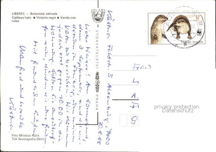 old postcard Liberec Botanicka zahrada Cattleya hybr Victoria regia Vanda coerulea postalisch gelaufen Erhaltung siehe scans