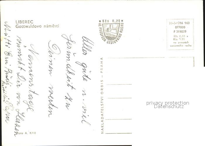Liberec Gottwald Platz postalisch nicht gelaufen Erhaltung siehe scans [AndreD76 kt119box]