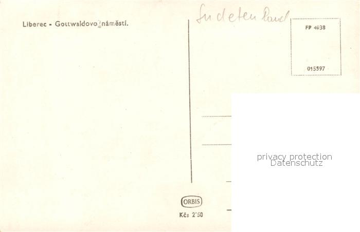 Liberec Gottwaldovo namesti Platz Strassenbahn postalisch nicht gelaufen Erhaltung siehe scans [FriedD77]