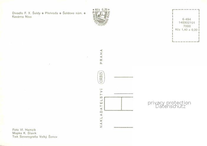 Liberec Prehrada Saldovo nam. Kavarna Nisa postalisch nicht gelaufen Erhaltung siehe scans [NatalD47]