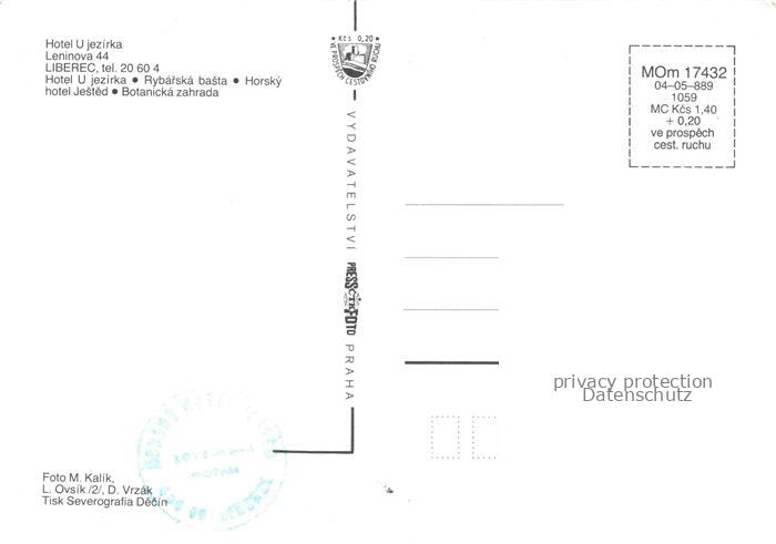 74087811 LIBEREC Reichenberg CZ Hotel U Jezirka Rybarska basta Horsky hotel Jested Botanick zahrada postalisch nicht gelaufen Erhaltung siehe scans [WerneD78] KatCode: 11520