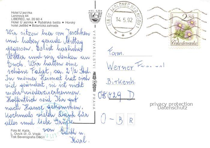 74042930 old postcard LIBEREC Reichenberg CZ Hotel U Jezirka Schwanenteich Park Botanicka zahrada postalisch gelaufen Erhaltung siehe scans [WerneD78] KatCode: 11520