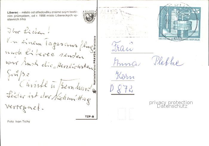 old postcard Liberec Teilansichten Hochhaus Rathaus Stausee Staumauer postalisch gelaufen Erhaltung siehe scans