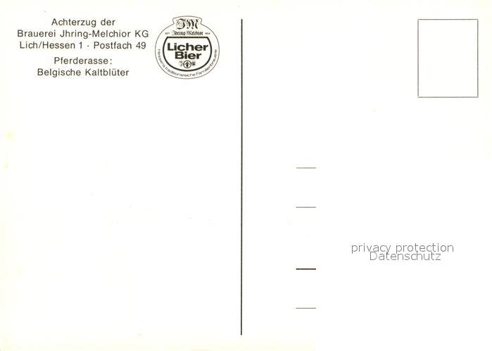 73227044 Lich Hessen Achterzug Brauerei Ihring Melchior KG Licher Bier Belgische Kaltblueter postalisch nicht gelaufen Erhaltung siehe scans [FriedD77] KatCode: 11110006531011