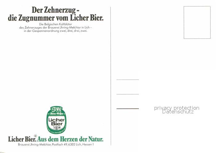 72902726 Lich Hessen Der Zehnerzug vom Licher Bier postalisch nicht gelaufen Erhaltung siehe scans [AndreD76] KatCode: 11110006531011