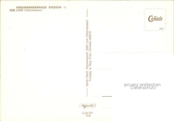 72447428 Lich Hessen Fliegeraufnahme Kreiskrankenhaus Giessen postalisch nicht gelaufen Erhaltung siehe scans KatCode: 11110006531011