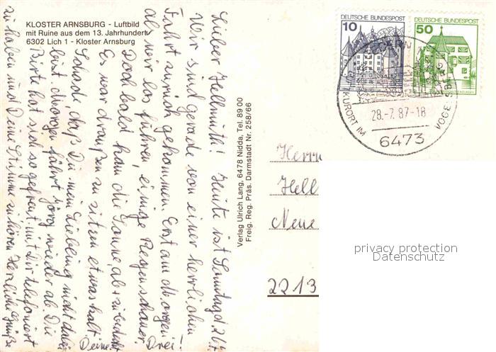 72715920 alte Postkarte Lich Hessen Kloster Arnsburg Fliegeraufnahme postalisch gelaufen Erhaltung siehe scans [FriedD77] KatCode: 11110006531011