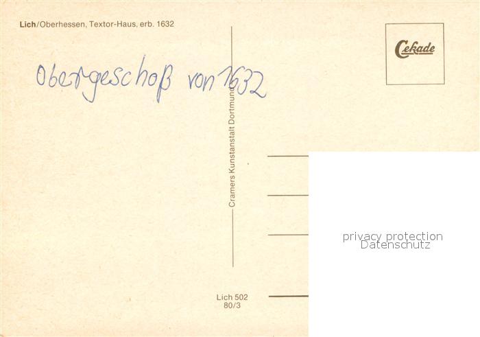 73664016 Lich Hessen Textor Haus Fachwerk postalisch nicht gelaufen Erhaltung siehe scans [LiesaD40] KatCode: 11110006531011