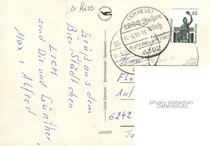 73207946 alte Postkarte Lich Hessen Turm am Wall Altstadt Oberstadt Unterstadt postalisch gelaufen Erhaltung siehe scans [KathaD81] KatCode: 11110006531011