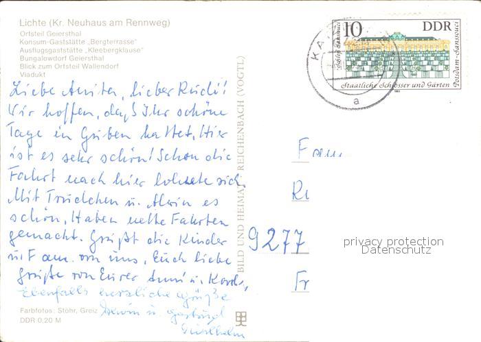 72373463 alte Postkarte Lichte Geiersthal Viadukt Gaststaette Kleebergklause postalisch gelaufen Erhaltung siehe scans KatCode: 11110016073049