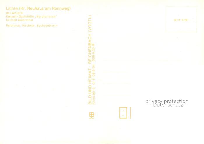 73649767 Lichte Panorama Lichtetal Konsum Gaststaette Bergterrasse OT Geiersthal postalisch nicht gelaufen Erhaltung siehe scans [FriedD77] KatCode: 11110016073049