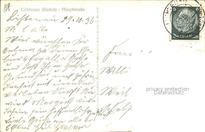 32211975 alte Postkarte Lichtenau Baden Hauptstrasse postalisch gelaufen Erhaltung siehe scans KatCode: 11110008216028