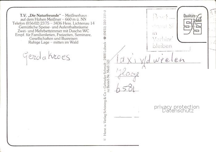 72205769 alte Postkarte Lichtenau Kassel Meissnerhaus Die Naturfreunde auf dem Hohen Meissen postalisch gelaufen Erhaltung siehe scans KatCode: 11110006611000