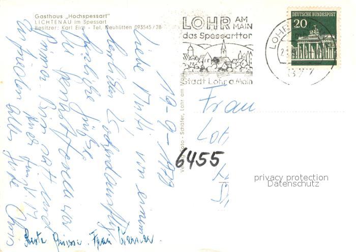 73648690 alte Postkarte Lichtenau Spessart Gasthaus Hochspessart postalisch gelaufen Erhaltung siehe scans [WerneD78] KatCode: 11110009671148