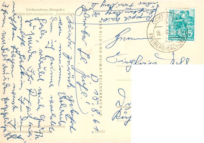73872826 alte Postkarte Lichtenberg Erzgebirge FDGB Erholungsheim Gasthof Lehnstueck postalisch gelaufen Erhaltung siehe scans [WerneD78] KatCode: 11110014177270