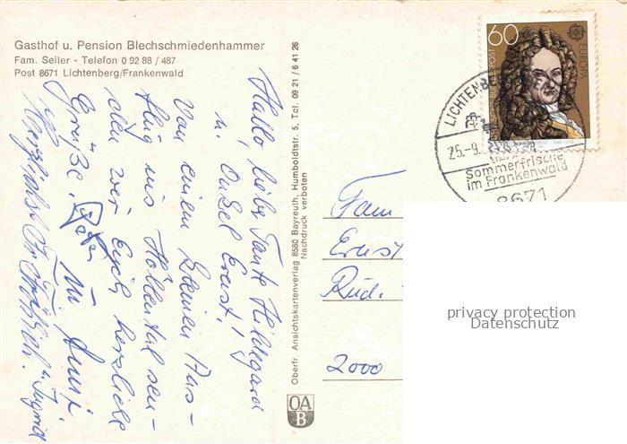 74143524 alte Postkarte Lichtenberg Frankenwald Hof Bayern Gasthof Pension Blechschmiedenhammer postalisch gelaufen Erhaltung siehe scans [SanaeD93] KatCode: 11110009475146