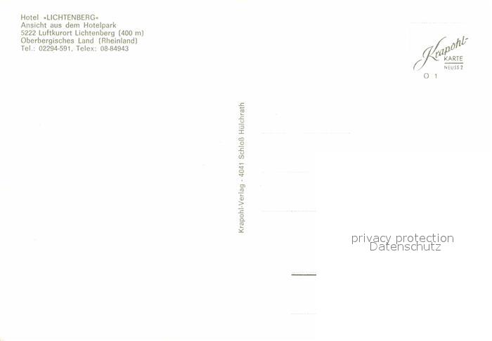 72744043 Lichtenberg Morsbach Sieg Hotel Lichtenberg Hotelpark postalisch nicht gelaufen Erhaltung siehe scans [FriedD77] KatCode: 11110005374028
