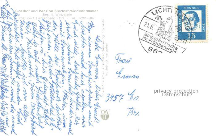 74113081 alte Postkarte Lichtenberg Oberfranken Blick ueber die Zonengrenze Gasthof Blechschmiedenhammer Blankensteinblick postalisch gelaufen Erhaltung siehe scans [WerneD78] KatCode: 11110009475146