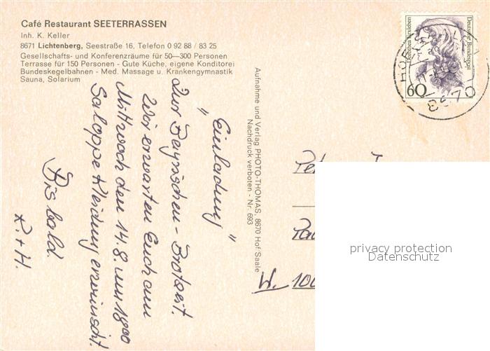 73735482 alte Postkarte Lichtenberg Oberfranken Cafe Restaurant Seeterrassen postalisch gelaufen Erhaltung siehe scans [WerneD78] KatCode: 11110009475146
