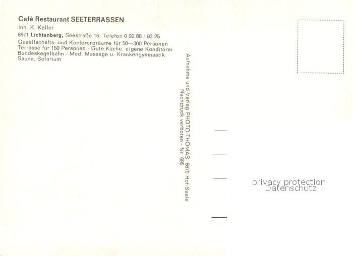 73648778 Lichtenberg Oberfranken Cafe Restaurant Seeterrassen Kegelbahn Gastraum Terrasse postalisch nicht gelaufen Erhaltung siehe scans [WerneD78] KatCode: 11110009475146