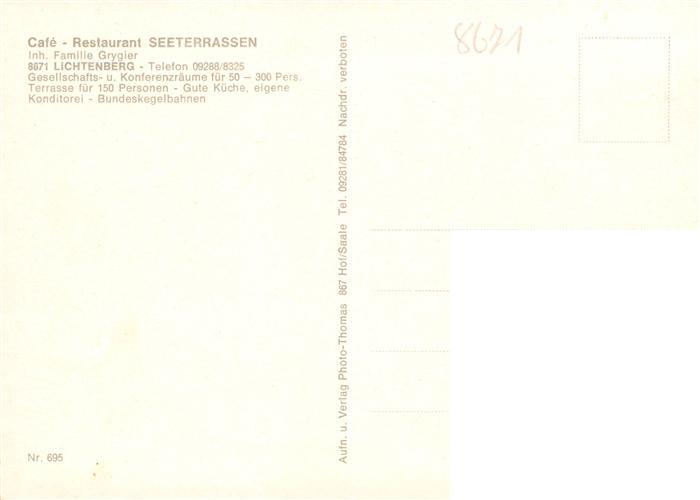 73941309 Lichtenberg Oberfranken Café Restaurant Seeterrassen Kegelbahn postalisch nicht gelaufen Erhaltung siehe scans [FriedD77] KatCode: 11110009475146