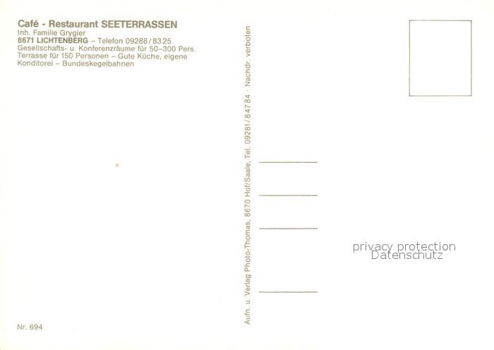 73543744 Lichtenberg Oberfranken Cafe Restaurant Seeterrassen Liegewiese Badestrand See postalisch nicht gelaufen Erhaltung siehe scans [FriedD77] KatCode: 11110009475146