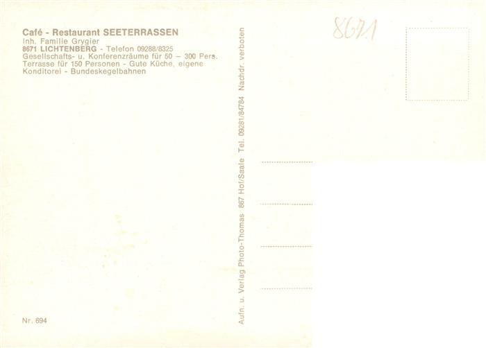 73941308 Lichtenberg Oberfranken Café Restaurant Seeterrassen postalisch nicht gelaufen Erhaltung siehe scans [FriedD77] KatCode: 11110009475146