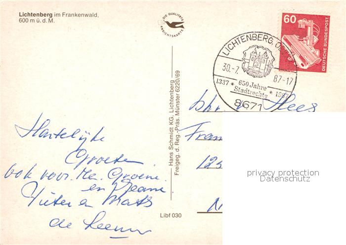 72985199 alte Postkarte Lichtenberg Oberfranken Fliegeraufnahme postalisch gelaufen Erhaltung siehe scans [LiesaD40] KatCode: 11110009475146
