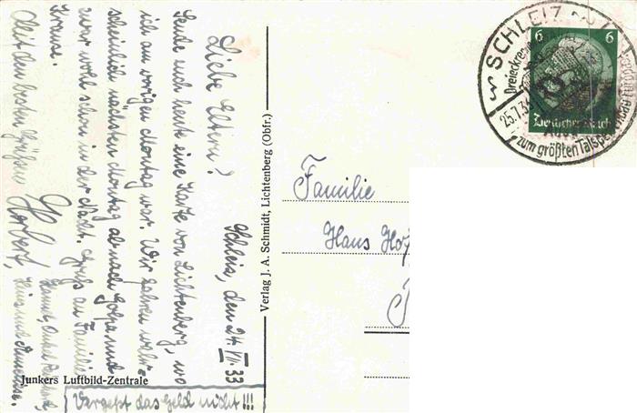 73975240 alte Postkarte Lichtenberg Oberfranken Fliegeraufnahme postalisch gelaufen Erhaltung siehe scans [FriedD77] KatCode: 11110009475146