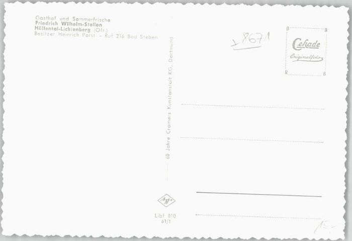 40239025 Lichtenberg Oberfranken Gasthof Friedrich Wilhelm Stollen KatCode 11110009475146