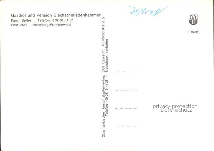 72527352 Lichtenberg Oberfranken Gasthof Pension Blechmiedenhammer postalisch nicht gelaufen Erhaltung siehe scans KatCode: 11110009475146
