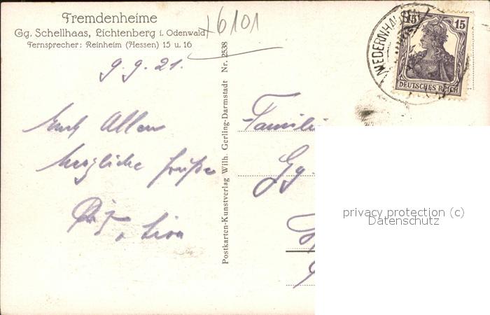 41508849 Lichtenberg Odenwald Fremdenheime Schellhaas Künstlerkarte KatCode 11110006432007