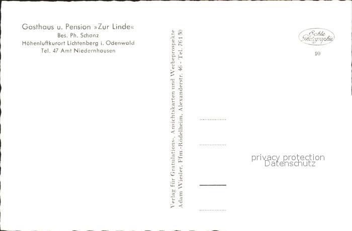 72261330 Lichtenberg Odenwald Gasthaus Pension Zur Linde postalisch nicht gelaufen Erhaltung siehe scans KatCode: 11110006432007