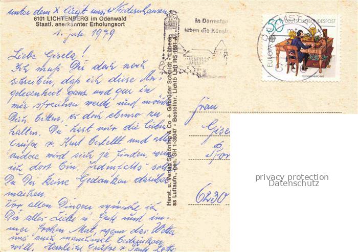 74020963 alte Postkarte Lichtenberg Odenwald Panorama Erholungsort postalisch gelaufen Fliegeraufnahme Erhaltung siehe scans [FriedD77] KatCode: 11110006432007