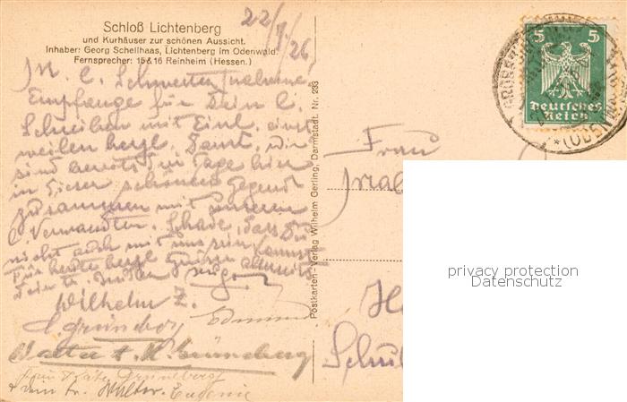 73809684 alte Postkarte Lichtenberg Odenwald Schloss Lichtenberg postalisch gelaufen Erhaltung siehe scans [FriedD77] KatCode: 11110006432007