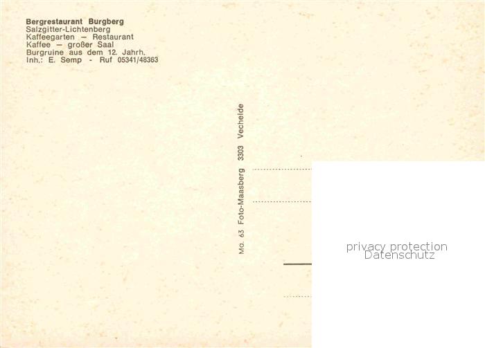 72663224 Lichtenberg Salzgitter Bergrestaurant Burgberg Bergfried Caminata postalisch nicht gelaufen Erhaltung siehe scans [NatalD47] KatCode: 11110003102000